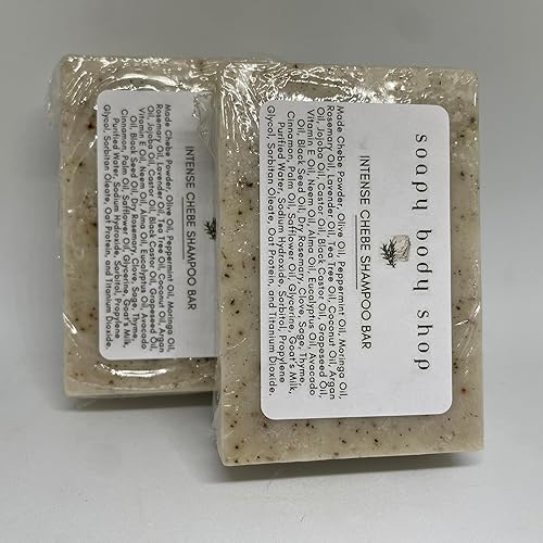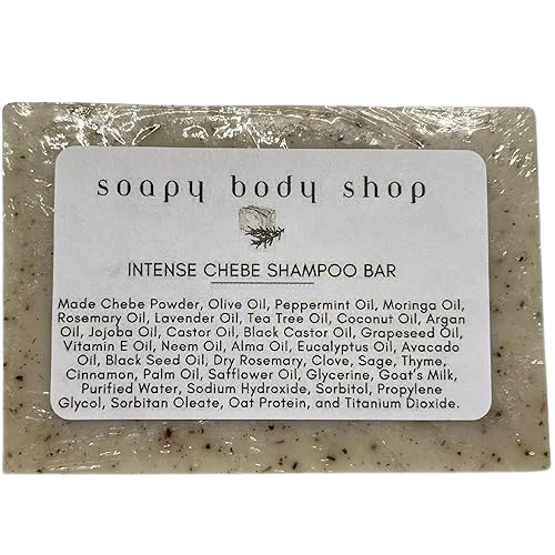 Unlock the incredible power of Chebe Powder combined with a potent blend of 20 essential oils and herbs in our Intense Chebe Powder Hair Growth Shampoo Bar! This all-natural, superior-quality shampoo bar is meticulously crafted to strengthen, nourish, and promote hair growth, giving you thicker, fuller, and healthier locks. Our exceptional formula fuses the time-honored benefits of African hair care traditions with carefully selected organic ingredients. Experience the remarkable difference this luxurious hair care product brings to your hair care routine, and enjoy luscious, revitalized tresses.