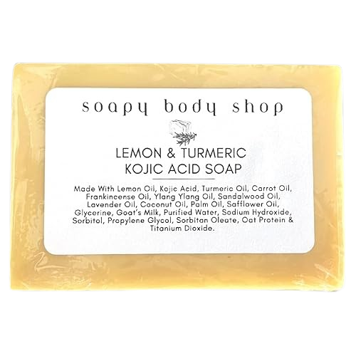 This Lemon Turmeric Kojic Acid Soap Bar is meticulously formulated to revitalize and transform the appearance of your skin. Our one-of-a-kind fusion of potent natural ingredients specifically targets dark spots, blemishes, and uneven skin tone, unveiling a stunning and vibrant complexion that exudes youthfulness and confidence. Enriched with the powerful combination of lemon, turmeric, and kojic acid, this luxurious soap bar works synergistically to gently exfoliate, nourish, and clarify your skin. The result is a beautifully balanced, radiant glow that highlights your skin’s natural beauty and resilience. If you are dealing with hyperpigmentation, acne scars, or any other blemish-related skin issues – this soap bar is just what you need!