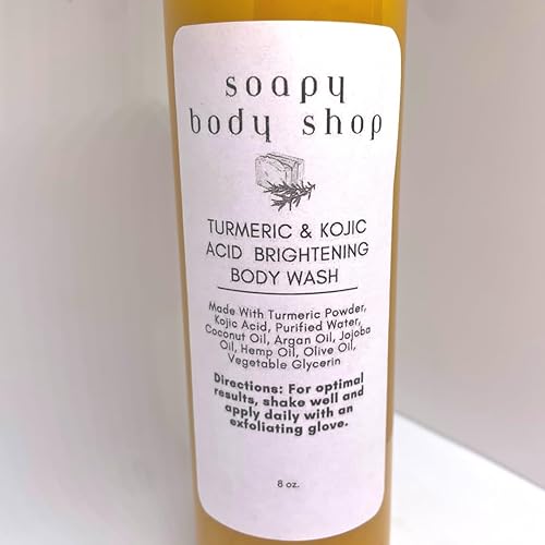 Introducing our Turmeric & Kojic Acid Brightening Body Wash, a luxurious and effective body wash designed to brighten and even out your skin tone. Formulated with a blend of natural ingredients, including Turmeric, Kojic Acid, Coconut Oil, Argan Oil, and more, this body wash works to gently exfoliate and remove dead skin cells, revealing a brighter and smoother complexion. The Turmeric in this body wash is known for its powerful brightening properties, while Kojic Acid helps to lighten dark spots and acne scars.